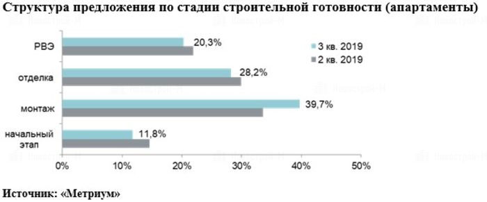*В связи с отсутствием данных в открытых источниках информации, для ряда комплексов объем предложения рассчитан экспертно, исходя из общего количества апартаментов по проекту, стадии строительной готовности, оценочным данным темпов реализации, информации, полученной от менеджеров продаж.