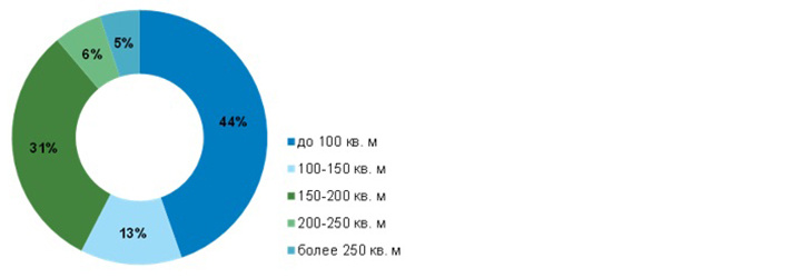 Поскольку практически для всех обозначенных выше групп покупателей жилье в ММДЦ «Москва-Сити» не является первым/единственным, то зачастую покупатели рассматривают для покупки компактные лоты площадью до 100 кв. м, предложение которых на текущий момент существенно ограничено. Средняя площадь экспонируемого на первичном рынке апартамента в Сити составляет 139 кв. м, а в структуре предложения апартаментов по площади помимо 44% лотов площадью до 100 кв. м треть от общего объема занимают лоты площадью 150-200 кв. м.