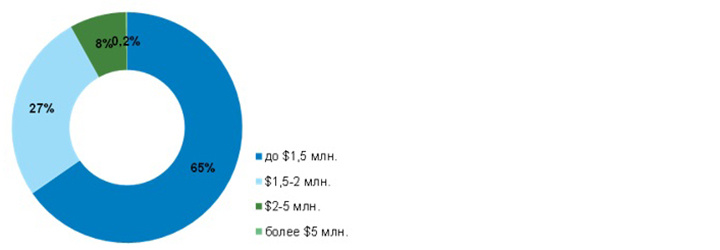 Следует отметить, что 65% общего объема предложения апартаментов в ММДЦ «Москва-Сити» сосредоточено в бюджете до $1,5 млн., так же, как и на первичном рынке элитных апартаментов Москвы, где в аналогичном бюджете сконцентрировано 60% всего предложения.