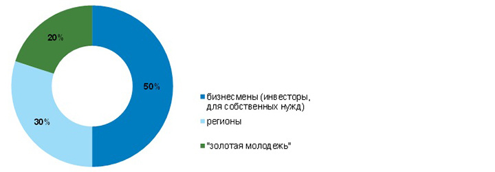 Основной целевой аудиторией апартаментов в ММДЦ «Москва-Сити» являются мужчины в возрасте 40-50 лет, бизнесмены, приобретающие такую недвижимость как необходимую для собственных нужд, так и в качестве инвестиционных вложений, из которых доля инвесторов составляет порядка 20%.