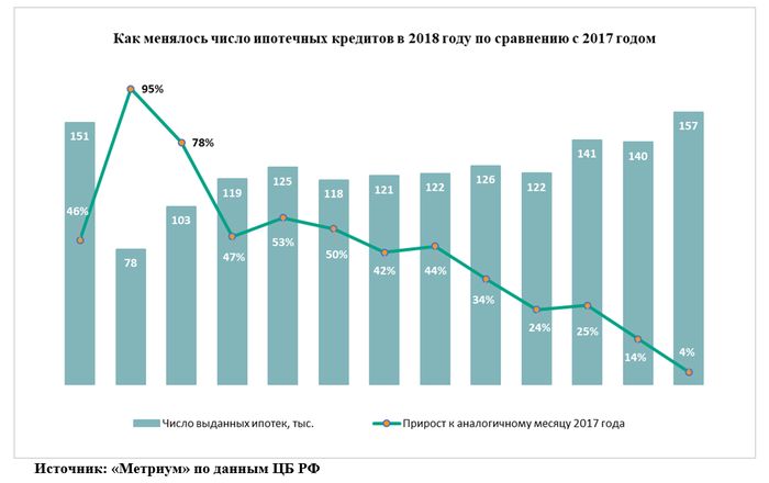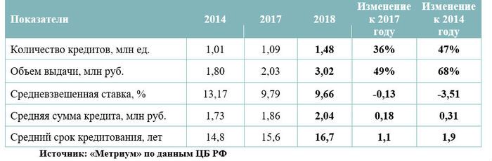Согласно статистике, опубликованной Банком России, в 2018 году россиянам выдали рекордное количество ипотечных кредитов за всю историю – 1,48 млн единиц на общую сумму 3 трлн рублей. Побит последний рекорд по этим показателям, зафиксированный в 2014 году. В сентябре и октябре был достигнут исторический минимум по размеру средней ставки по выданным жилищным кредитам, который составил 9,41% годовых. Однако во второй половине 2018 года ситуация резко изменилась и кредит начал дорожать, что успело отразиться на динамике выдачи ипотеки.