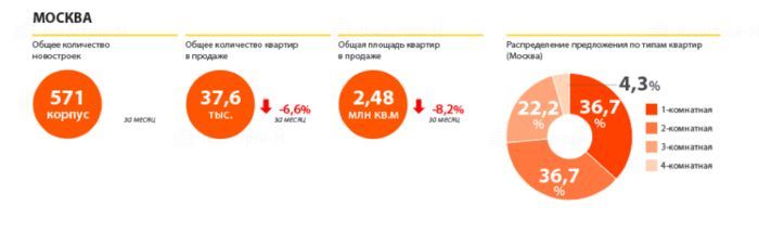Эксперты компании «Миэль-Новостройки» сообщают о снижении объемов предложения в новостройках «старой» Москвы третий месяц подряд. Количество квадратных метров в продаже уменьшилось с 2,87 млн кв. м до 2,48 млн кв. м. В Новой Москве также отмечается снижение объема предложения: здесь за последние два месяца объем квадратных метров в экспозиции снизился почти на 16%.