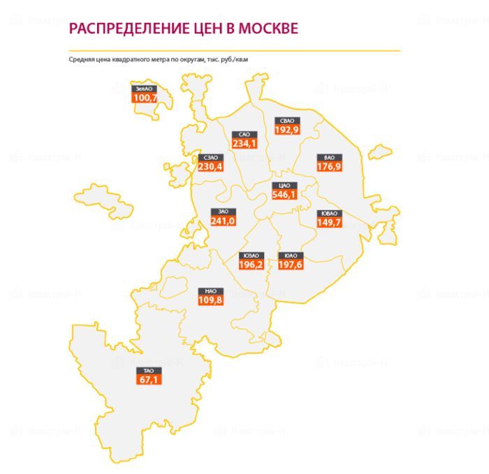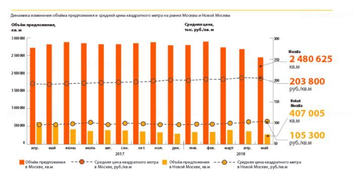 В июне 2018 года средневзвешенная цена НАО составила 109,8 тыс. руб./кв. м, прирост относительно мая составил 1,8%. Средневзвешенная цена в ТАО в исследуемый период осталась неизменной и составила, как и в мае, 67,1 тыс. руб./кв. м.