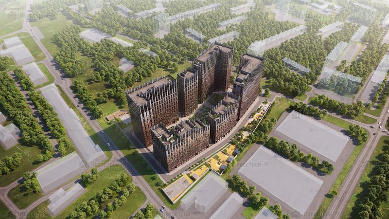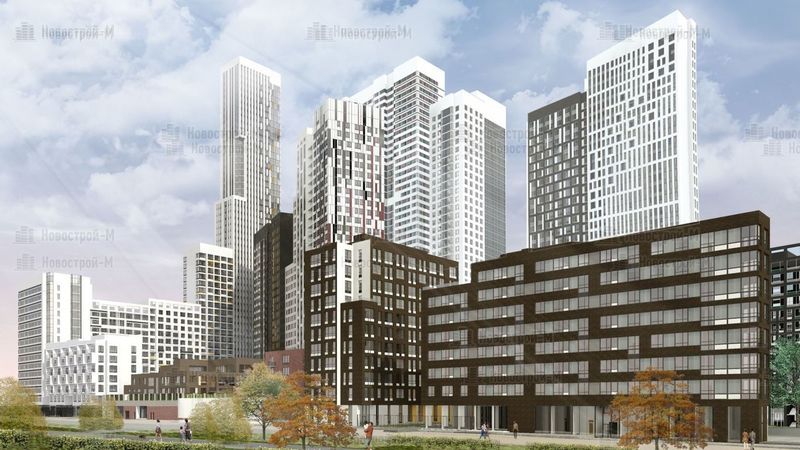 Новостройки в стадии активного строительства, которые находятся в самой непосредственной близости от корпусов муниципального жилья (то есть градостроительно могут быть объединены с ними в единый комплекс):