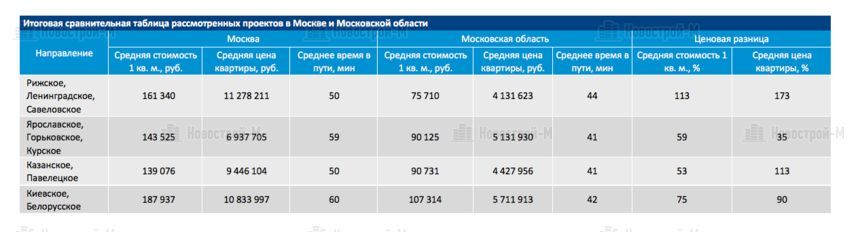 Если при выборе квартиры ориентироваться в первую очередь на затрачиваемое время в пути из центра, то действительно можно покупать квартиру в ближайшем Подмосковье и при этом добираться до нее из центра Москвы иногда даже быстрее, чем до отдаленных московских районов внутри МКАД, либо за сопоставимое время (±7-10 мин). При этом разница в стоимости 1 кв. м на первичном рынке между квартирами в Москве и ближайшем Подмосковье составляет от 53 до 113% (без учета стадии строительной готовности проектов).