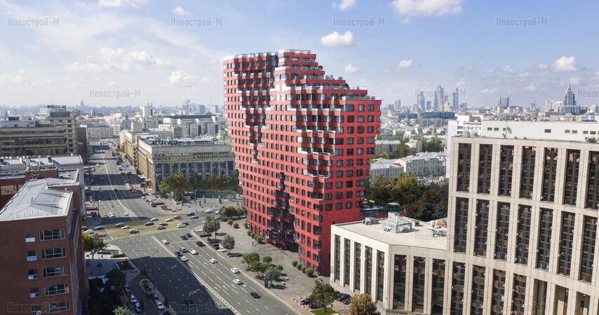 Хорошо известный, с яркой, хотя и небесспорной архитектурой, комплекс апартаментов Red 7 от ГК «Основа» (на углу «бунтарского» проспекта Академика Сахарова и Садового кольца) удивил ростом цены аж до 665 тыс. руб./кв. м (+23,6% по итогам квартала, и +62% – по итогам года), благодаря чему занял 5 место. Хотя, в общем-то, удивляться нечему – правило для недвижимости «место, место и ещё раз место» никто не отменял, строительство идёт по плану, сдача ожидается в конце этого года (будем наблюдать, поскольку пока были вопросы к темпам строительства). Можно спорить, отнести его к бизнес-классу или это всё же «премиум» (забегая вперёд, в этом рейтинге у нас есть ещё несколько таких комплексов на грани между бизнес- и премиум-классами), однако стартовал он по вполне «бизнесовой» цене для Садового кольца – 332 тыс. руб./кв. м в конце 2018 года.