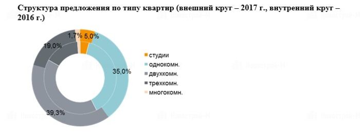 Структура предложения по типу квартир (внешний круг – 2017 г., внутренний круг – 2016 г.)