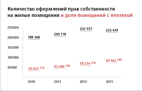 В 2013 году на рынке жилья наблюдалась тенденция роста доли сделок с ипотекой в новостройках – по оценкам АИЖК, в целом по России доля ипотечных кредитов на приобретение жилья в новостройках достигает 40% от общего объема выданных ипотечных кредитов, а по некоторым объектам, особенно в Московском регионе, она превышает 50 и даже 70% объема продаж.