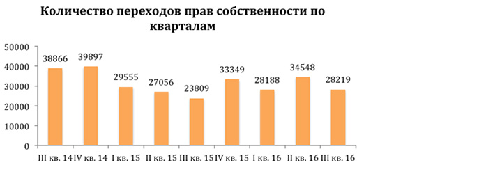 Всего Росреестр зарегистрировал в третьем квартале 28 219 переходов прав, в том числе 8 760 – в сентябре текущего года. Показатель первого месяца осени стал одним из самых плохих в этом году. Меньше переходов прав собственности было отмечено только в январе 2016 года. Эти данные свидетельствуют о том, что вторичный рынок по-прежнему испытывает трудности из-за оттока платежеспособного спроса в сегмент новостроек.