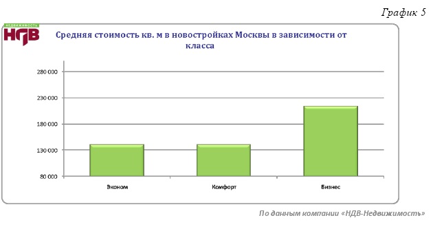 Средняя стоимость кв. м в новостройках эконом- и комфорт-класса практически не изменилась и составила 140 087 руб. (+0,8%) и 140 199 руб. (+1%), соответственно. Цены в новостройках бизнес-класса ощутимо выросли. Средняя стоимость кв. м – около 213 522 руб. (+8,5%).