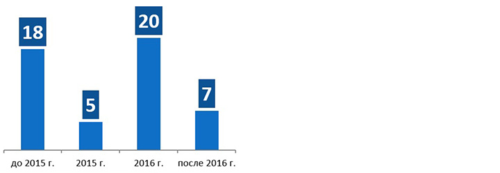 Распределение проектов бизнес-класса по сроку ввода в эксплуатацию