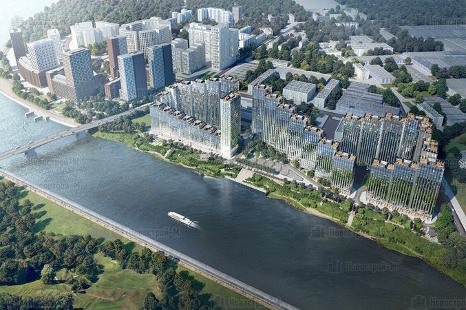 Комплекс бизнес-класса будет состоять из трех 25-этажных башен, насчитывающих 747 апартаментов, от небольших студий (23 кв.м.) до полноценных пентхаусов площадью 209 кв.м. с шикарными видами на Москву-реку и огромные зеленые пространства противоположного берега. Рядом с комплексом будет благоустроена городская набережная в экостиле с велодорожками, зонами для променада, спорта и пляжного отдыха.