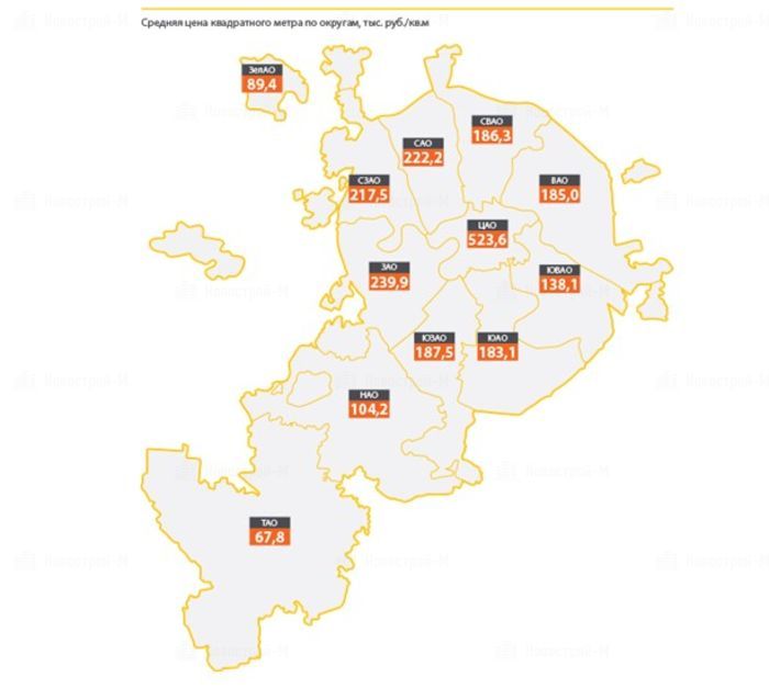Наиболее доступными округами в августе 2017 г. остались ЗелАО (89,4 тыс. руб./ кв. м) и ЮВАО (138,1 тыс. руб./ кв. м).