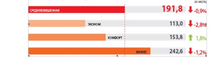 В августе 2017 г. доля предложения бизнес-класса сократилась с 48,2% до 47,1%. Доля комфорт-класса в общей структуре предложения наоборот увеличилась на 0,4 п.п. (до 43,4%). Также увеличилась и доля экономкласса (с 8,8% до 9,5%).