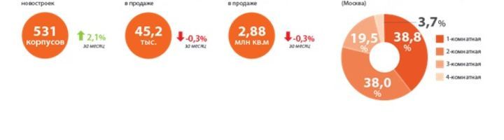Таким образом, на фоне относительно высокого спроса на новостройки Новой Москвы, совокупный объем предложения сократился на 5,2% до 426,1 тыс. кв. м. Число экспонированных квартир на рынке сократилось на 6,4% до 7,9 тыс. лотов.