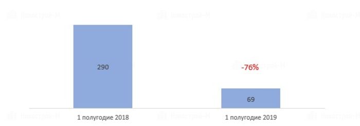 В исследовании одним из трендов на рынке первичной недвижимости отмечено резкое снижение количества выданных разрешений на строительство после бума в июне 2018 года, когда их число достигло 176. В результате в первом полугодии 2019 года в Москве девелоперы получили на 76% меньше разрешений на строительство по сравнению с аналогичным показателем первого полугодия 2018 года – 69 и 290 штук соответственно.
