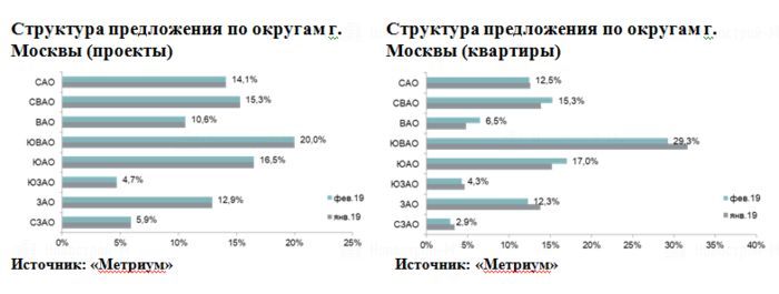 Новые проекты на первичном рынке жилья массового сегмента в феврале 2019 г.