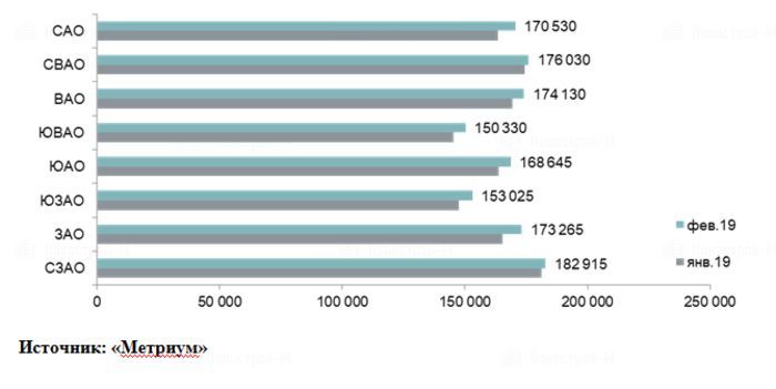 165 610 руб. за кв. м. Рост цен за последний месяц отмечен во всех округах. В отдельных проектах произошло повышение сразу на 5-10%. Сыграло роль как увеличение стадии строительной готовности объектов, так и повышение НДС, и грядущий переход на эскроу-счета – таким образом застройщики готовятся к работе по новой модели финансирования.
