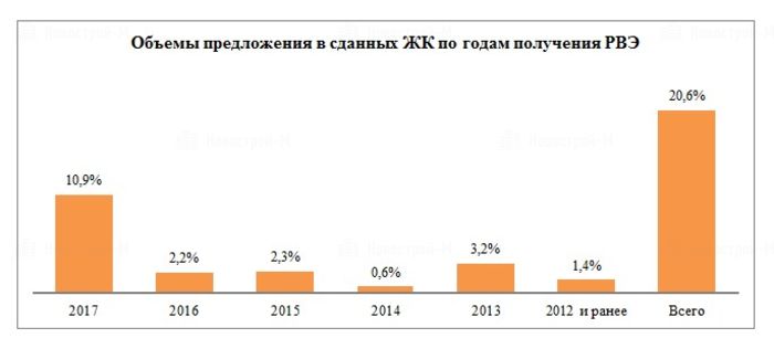 Впрочем, сегодня на первичном рынке жилой недвижимости «старой» Москвы представлено немало проектов, сдавшихся более трех лет назад, но до сих пор нераспроданных. По подсчетам экспертов компании «Метриум», доля остатков в жилых комплексах, сданных в 2014 году и ранее, составляет 5,2% от общего количества квартир в продаже и четверть от сданного в эксплуатацию объема. Учитывая объемы «свежего» предложения и регулярный выход на рынок новых жилых комплексов, строящихся по современным стандартам, проекты, возведение которых началось 5 и более лет назад, а разрешение на ввод в эксплуатацию было оформлено больше трех лет назад, постепенно переходят в разряд неликвидного продукта, для реализации которого нужно приложить немало усилий.