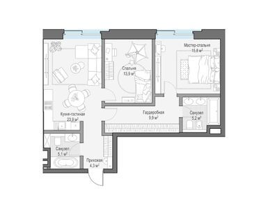 Планировки двухкомнатных квартир в Клубных особняках «Ильинка 3/8»