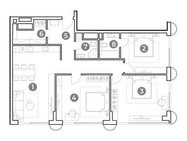 Застройщик предлагает различные варианты лотов: от 21-метровых студий до 4-комнатных площадью 111 кв. м. Высота потолков — 3,1 м. В конце октября 2024 года для покупки доступны лоты площадью от 21,1 до 110,1 кв. м, минимальная стоимость — 9 млн рублей. Недвижимость продается без отделки, но есть опция дозаказа отделки white box.