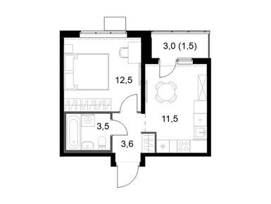 2-комн. квартира 44,00 м2 12 509 640