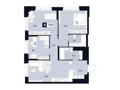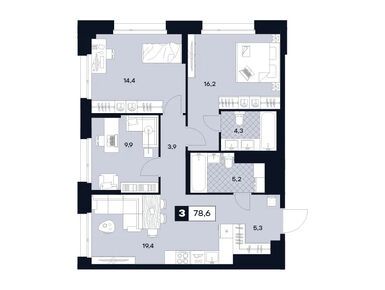 Планировки четырехкомнатных квартир в ЖК U2 (ЮТУ)