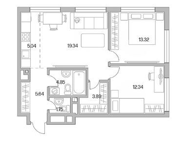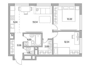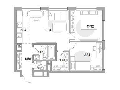 Планировки двухкомнатных квартир в ЖК «BeLuck Коломенское» (БиЛак Коломенское)