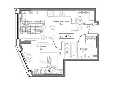 Квартирография проекта включает варианты от студий до пентхаусов с террасами. Большинство квартир будут иметь виды на реку. В середине марта 2025 года покупателям предложены квартиры во всех трех корпусах, площадь лотов — от студий площадью 28 кв. м до 3-комнатных евроформата 79 кв. м. Цены начинаются от 15,9 млн рублей за 29-метровую студию.