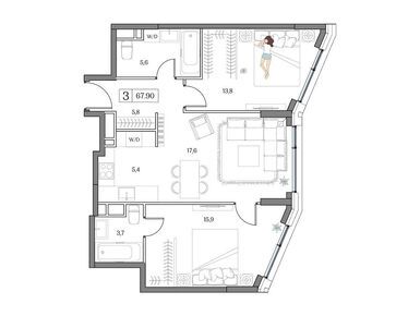 Планировки трехкомнатных квартир в ЖК Dream Riva (Дрим Рива)