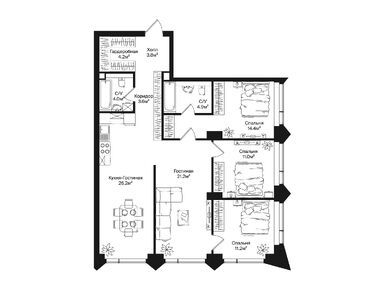 В середине августа 2025 года в продаже есть 165 квартир в трех корпусах — от студий площадью 28,7 кв. м до лотов с тремя спальнями, кухней-гостиной и террасой площадью 126,5 кв. м. Жилье реализуется без отделки и с отделкой white box, цены — от 15 млн рублей. Купить квартиру предлагается в ипотеку (в том числе по программам семейной и траншевой ипотеки), в рассрочку под 0% и по программе trade-in.