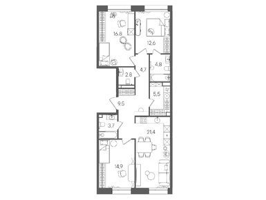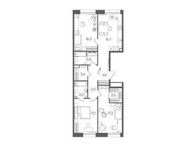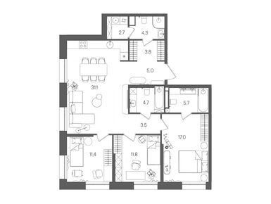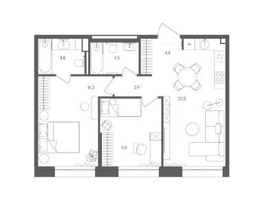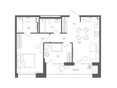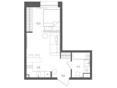 В проекте будет 545 квартир — от студий до многокомнатных, всего 88 форматов планировочных решений. Особенности планировок: евроформат, мастер-спальни, балконы и террасы, двухуровневые лоты. В середине октября 2025 года в продаже есть 130 квартир без отделки площадью от 30,2 до 144,2 кв. м, цены — от 18,95 млн рублей. Ввод проекта в эксплуатацию запланирован на IV квартал 2028 года.