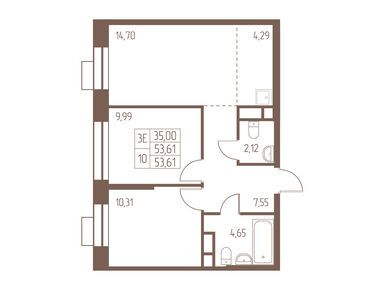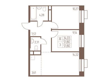 В проекте есть квартиры с классическими и евро-планировками — от студий до трёхкомнатных. Площадь лотов — от 29 до 74 кв. метров. Отделка — white box.