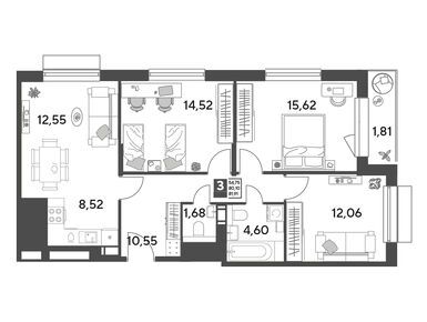 Планировки трехкомнатных квартир в ЖК «Публицист»