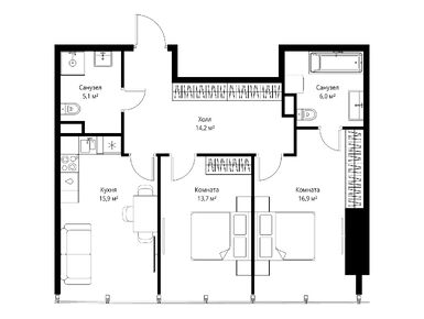 Квартиры в «One» разработаны при участии бюро Олега Клодта и спроектированы с минимальным количеством стандартных решений: здесь роскошь выражена не во внешних атрибутах, а в комфорте, функциональности и внимании к каждой детали. Планировки подстраиваются под стиль жизни владельца: комнаты легко зонировать благодаря правильным формам. К покупке доступно 1417 квартир (около 15 на каждом этаже) в трех форматах: однокомнатные лоты (49 кв. м) с изогнутым радиальным остеклением, видами на Сити и светлыми кухнями-гостиными, двухкомнатные лоты (90 кв. м), где предусмотрены постирочная, гардеробная и мастер-спальня с собственным санузлом, трехкомнатные лоты (94 кв. м) с кухней-гостиной увеличенной площади и возможностью островной планировки.