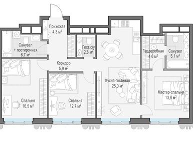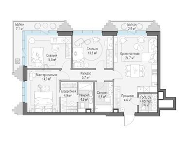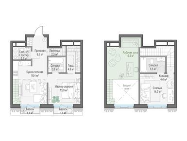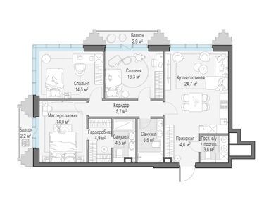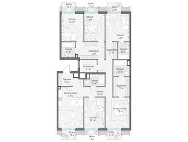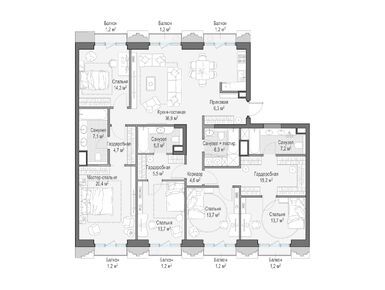 В проекте нет студий, зато есть квартиры редкого формата: пентхаусы, в том числе двухэтажные, с террасами и дровяными каминами; high level с каминами; квартиры с потолками высотой до 7 метров.