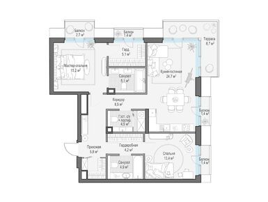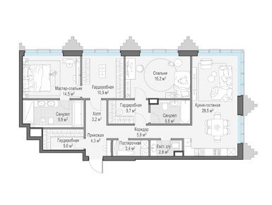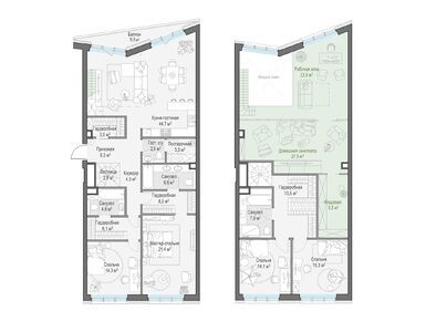 Планировки пятикомнатных квартир в Элитном квартале «Тишинский бульвар»