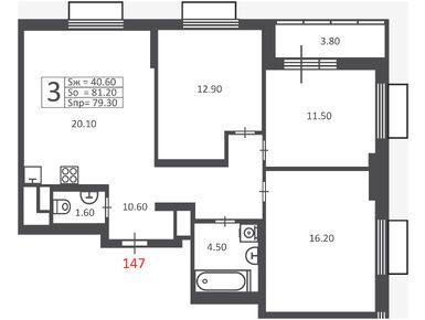 Участникам Программы реновации передано 194 квартиры, в том числе 43 студий, 70 однокомнатных, 59 двухкомнатных и 22 трехкомнатных. Этажность варьируется от 12 до 17 этажей. Во всех квартирах высота потолка достигает 2.69 м, увеличены оконные проемы, остеклены балконы и лоджии, на фасаде дома установлены блоки-корзины под кондиционеры. Квартиры сданы с чистовой отделкой под ключ.