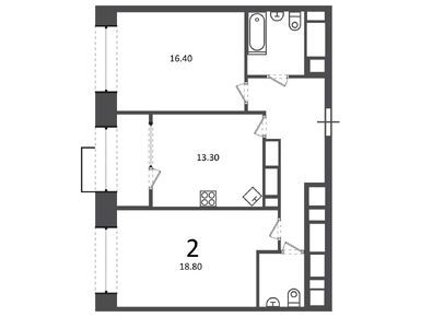 В корпусе, высотой от 9 до 32 этажей, расположены 1980 квартир: от студий до просторных пятикомнатных предложений. Во всех лотах высота потолка достигает 2,65 м, увеличены оконные проемы, остеклены балконы и лоджии, предусмотрены корзины для кондиционеров.