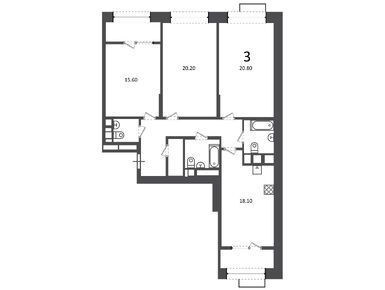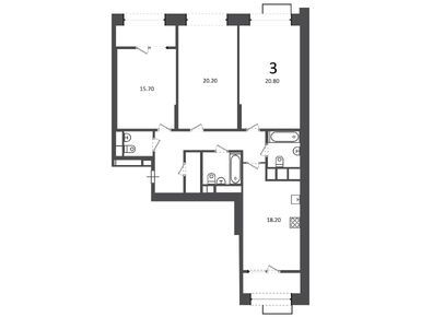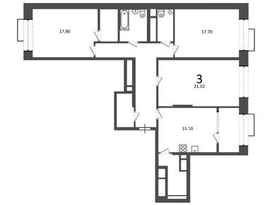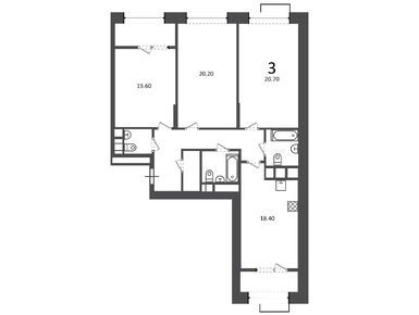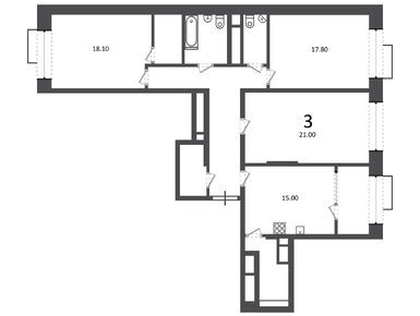 Планировки трехкомнатных квартир в Жилом доме «Клинская ул., д. 2А, к. 7»