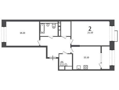 Планировки двухкомнатных квартир в Жилом доме «Клинская ул., д. 2А, к. 7»