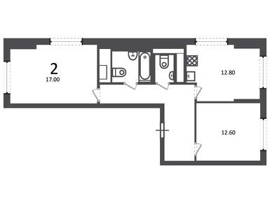 Планировки двухкомнатных квартир в Жилом доме «Кусковская ул., д. 12/1»