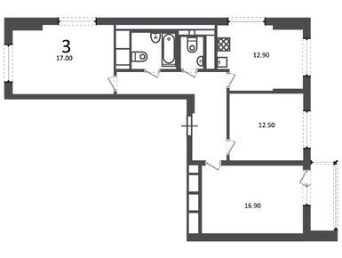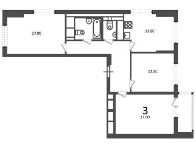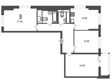 Планировки трехкомнатных квартир в Жилом доме «Кусковская ул., д. 12/1»