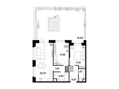 В ЖК Evo можно купить квартиру для любого состава семьи. Застройщик предлагает более 25 вариантов планировок: от компактных студий до трехкомнатных вариантов и квартир с собственной террасой. Площадь лотов — от 27,8 до 100,8 кв. метров.