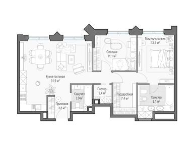 Планировки четырехкомнатных квартир в Дом «Достижение»