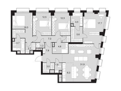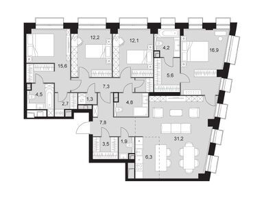 В продаже в ЖК «Сидней Сити» есть квартиры площадью от 33 до 161 кв. метра, от студий до многокомнатных. В клубном доме на первой линии набережной можно выбрать квартиры с видом на воду.