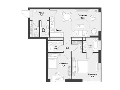 Планировки четырехкомнатных квартир в Жилом районе «АЛИА»