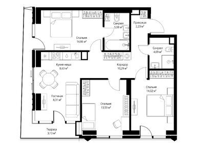Также среди общественных пространств, доступным резидентам комплекса, гостиные с мини-кухнями, где можно отметить какое-то событие или провести бизнес-встречу. В комплексе предусмотрена большая лаундж-зона и коворкинги.