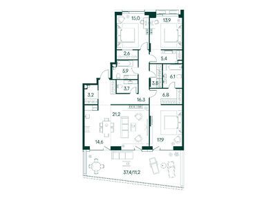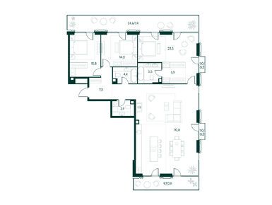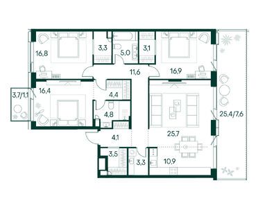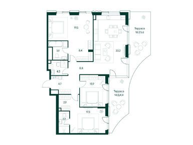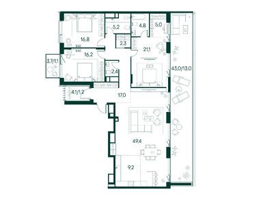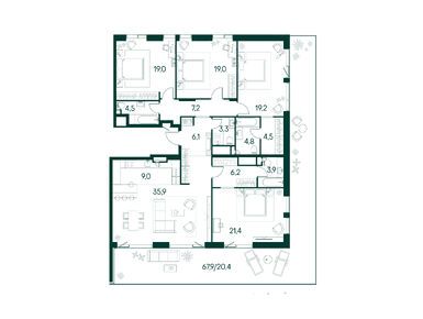 Планировки четырехкомнатных квартир в Клубный город на реке Primavera (Примавера)