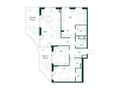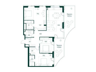 Планировки пятикомнатных квартир в Клубный город на реке Primavera (Примавера)